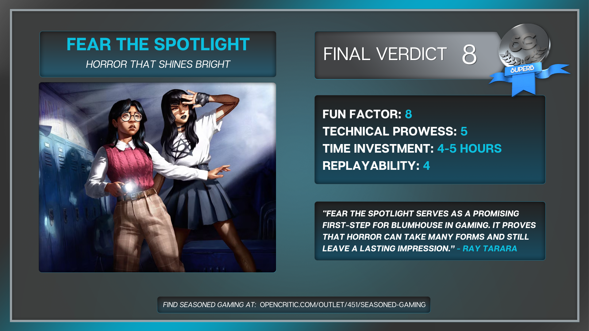 Whether you’re a fan of retro horror games, narrative-driven experiences, or just looking for a short but memorable game to to play this Halloween, Fear the Spotlight is well worth your time. It may not redefine the genre, but it stands out as a polished indie gem with plenty of heart that leaves me excited to see what both Cozy Game Pals and Blumhouse will do next.